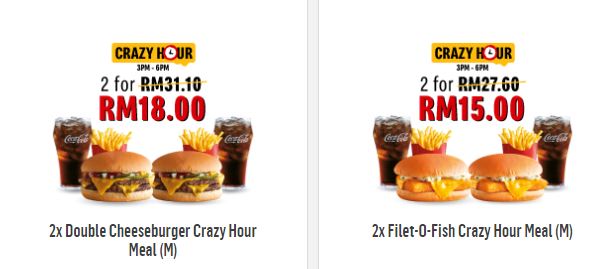 ▼ 2x Filet-O-Fish Crazy Hour Meal (M) 现在是 RM15.00(原价 RM27.60)!
