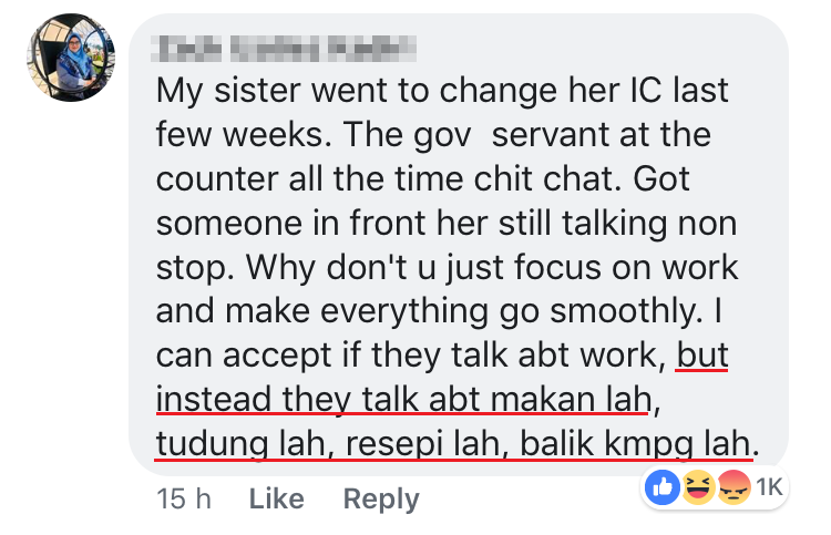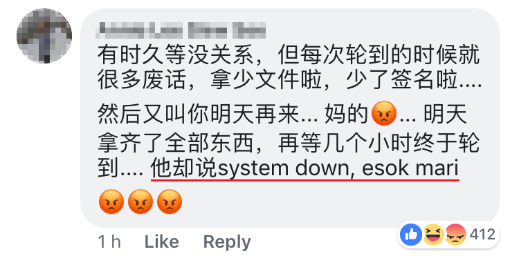 接着今天早上,此视频又被脸书群组“我们是马来西亚人”上载并加以解释: “政府部门每次都”不够人手”… 早上10点多拿了号码, 2点来回几次后还轮不到他..火都滚了! 开的柜台却总是空着几个,说不够人手,但是却看到很多公务员在里面走来走去,这边聊一下那边聊一下的! 白拿薪水!”