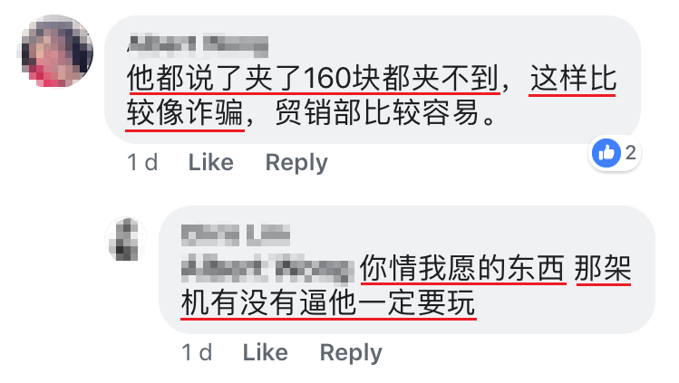 网民对此事件存有了两极化的看法,有者认为是楼主无理取闹,也有网民认为夹娃机本来就是骗人所以引来了各方的剧烈讨论。