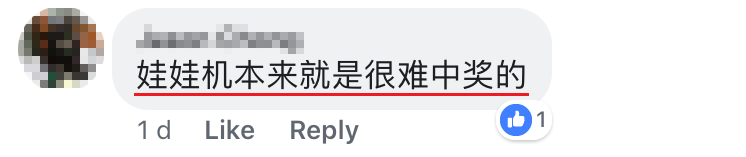 ▼但有网友留言解释娃娃机本来就是很难中奖的。
