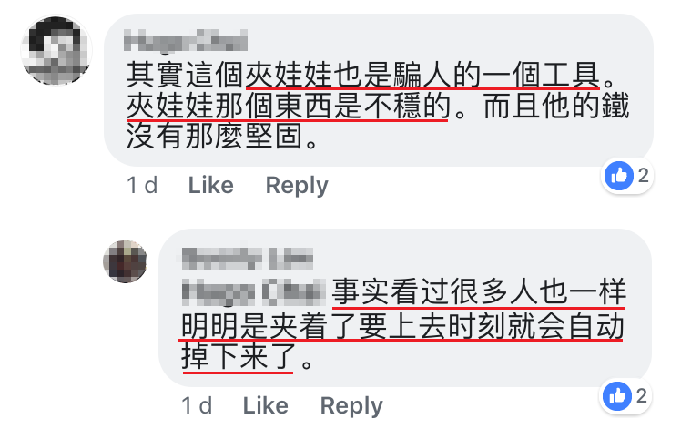 ▼有网友也认为楼主花了那么多钱还夹不到真的好像被骗了。