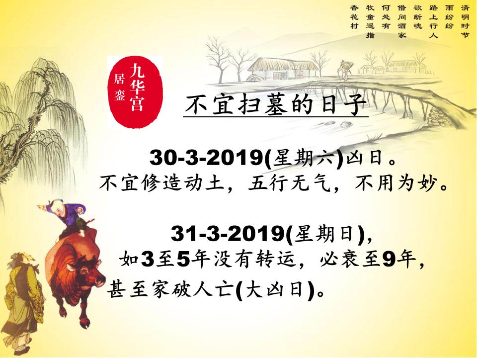▼然而根据居銮九华宫的整理3月30日(星期六)和3月31日(星期日)不宜扫墓。