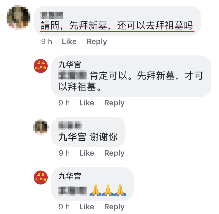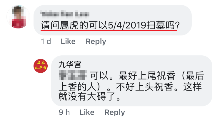 由于2019年清明节扫墓吉日是发布在九华宫的脸书所以有部分民众也乘机留言让师父们指点指点。