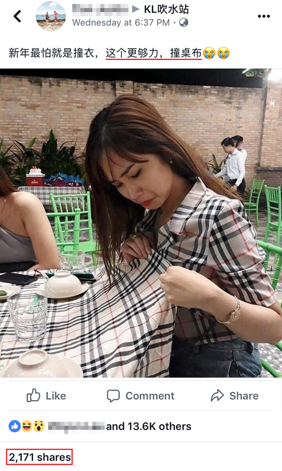 ▼哈哈,这个网友也太厉害酸了啦~“你把Burberry当新年衣,人家把它当作桌布”。