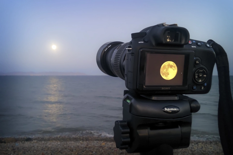 - 18 时 25 分:满月渐渐上升。月亮出来的那30分钟之时,正是人们与超级月亮合影的最佳时机,可以使用数码相机或手机来拍摄。