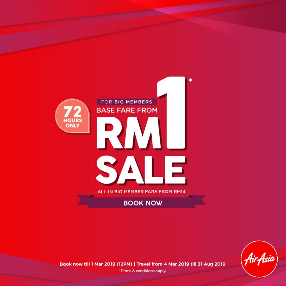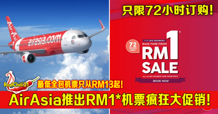 AirAsia刚刚在他们的脸书专页宣布了RM1飞机票促销优惠!