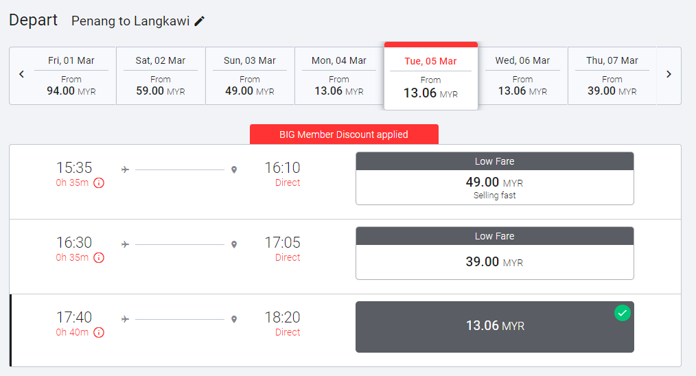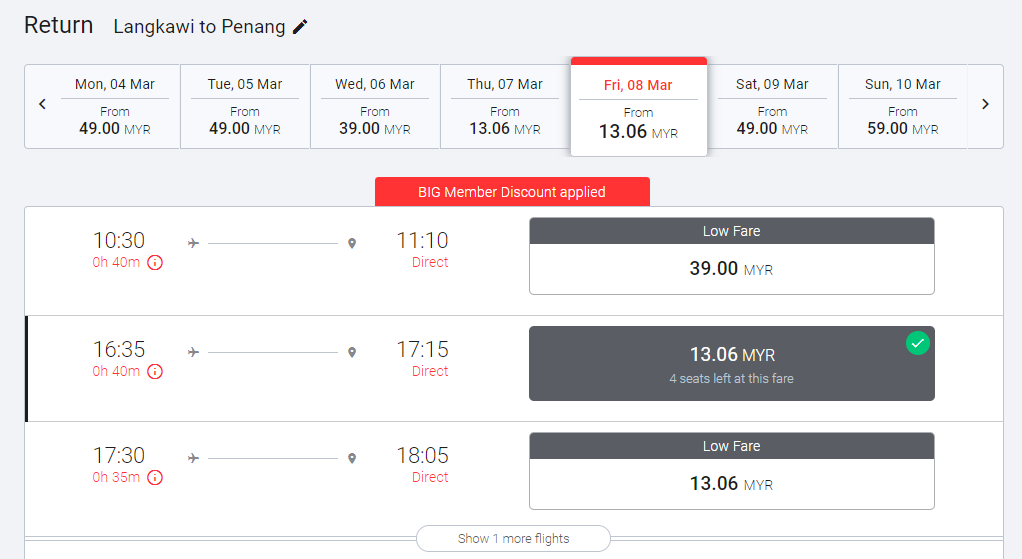▼有图有真相!兰卡威飞往槟城单程机票只需RM13.06。
