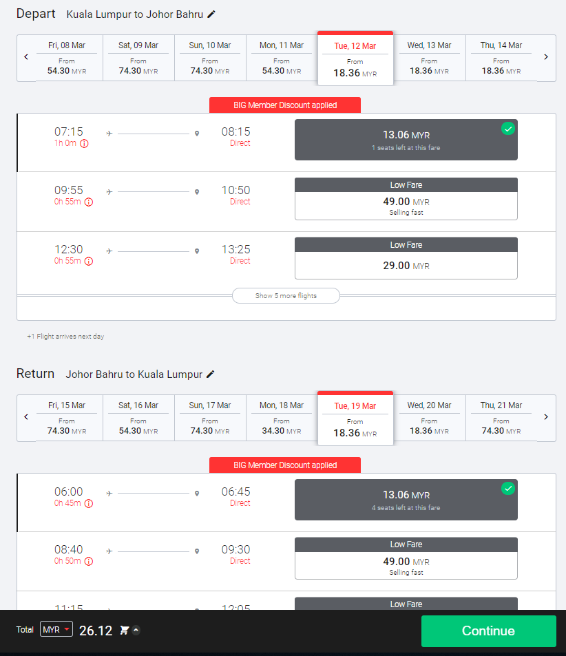 ▼吉隆坡飞往柔佛来回机票只需RM26.12。