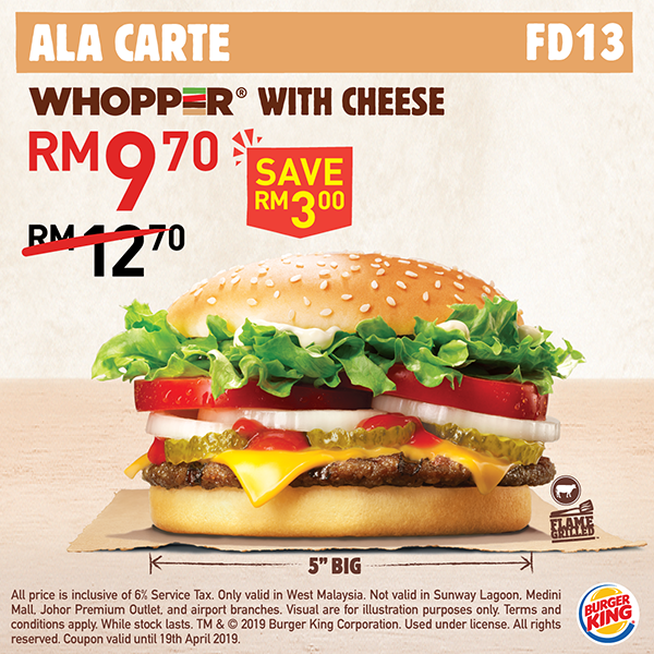 ▼Whopper with cheese 仅售 RM9.70