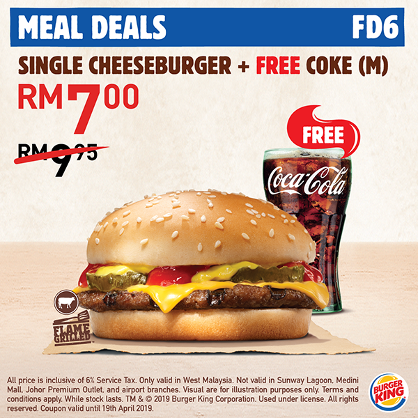 ▼Singe Cheeseburger + Coke 仅售 RM7.00