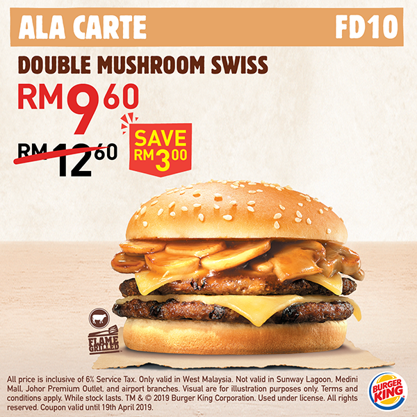 ▼Double Mushroom Swiss 仅售 RM9.60