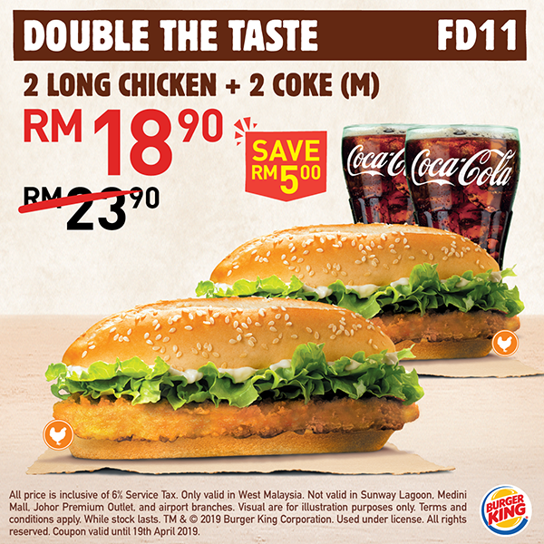 ▼2份 Long Chicken + 2杯 Coke仅售 RM18.90
