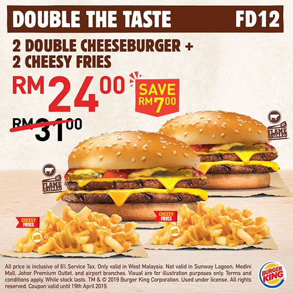 ▼2 份 Double Cheeseburger + 2 份 Chessy Fries 仅售 RM24.00