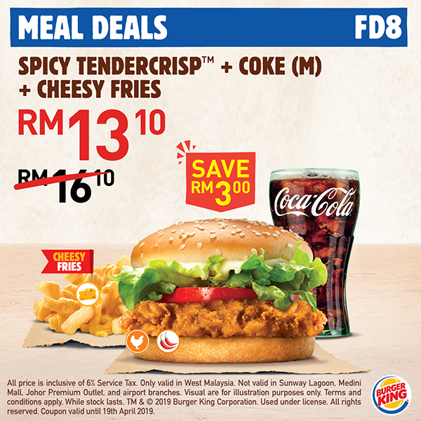 ▼Spicy Tendercrips + Coke + Cheesy Fries仅售 RM13.10