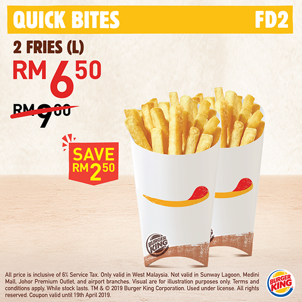 ▼2份薯条仅售 RM6.50