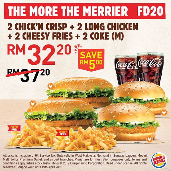 ▼2份 Chicken Crisp + 2份 Long Chicken + 2份 Chessy Fries + 2 Coke仅售 RM32.20