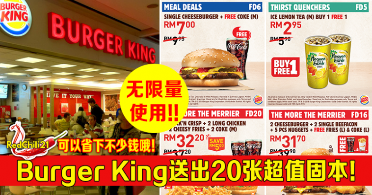 想要以更便宜的价格吃到 Burger King 吗?只要你下载以下的折扣券,就可以在限期内无限次使用了!!