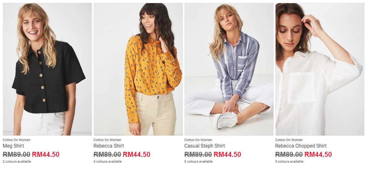 ▼ Promotion 1 :各款的女性衬衫。现在才 RM44.50!(原价 RM 89.00)