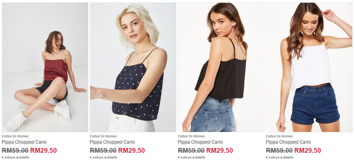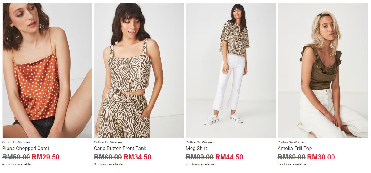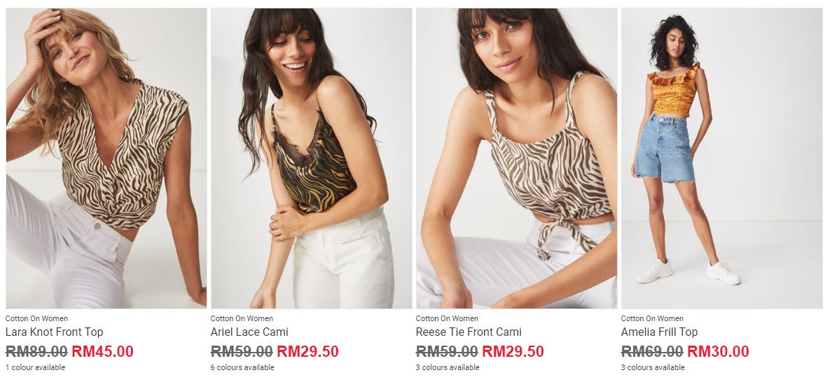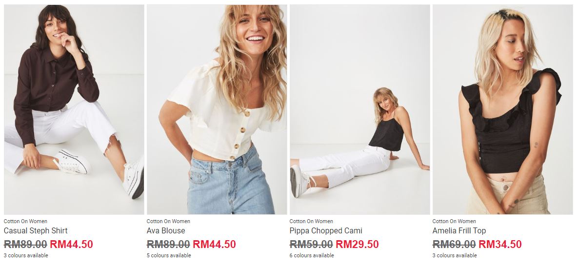 ▼ Promotion 2 :女性的衬衫 / 有袖上衣 / 无袖上衣。现在才 RM44.50(原价 RM89.00)/ RM29.50(原价 RM59.00)/ RM34.50(原价 RM69.00)!