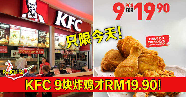 ▼ KFC 又再优惠了!4块炸鸡 + 5块炸鸡块(Crispy Tenders)才RM19.90!