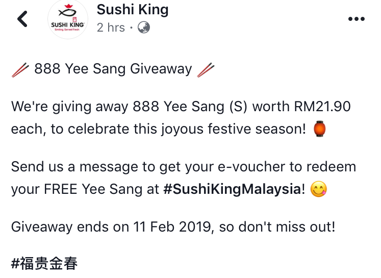 促销活动:Sushi King免费送出价值RM21.90的美味鱼生