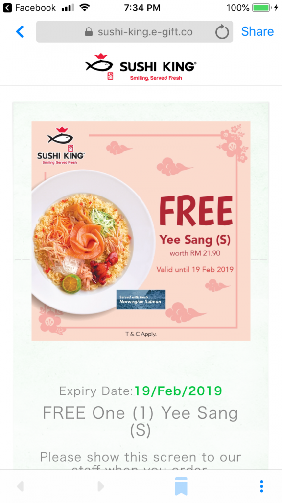 所以大马Sushi King将免费送出价值RM21.90的美味鱼生来回馈大家。