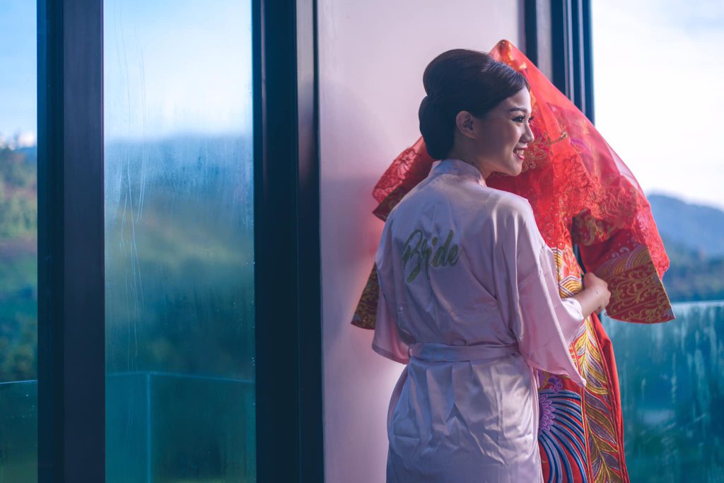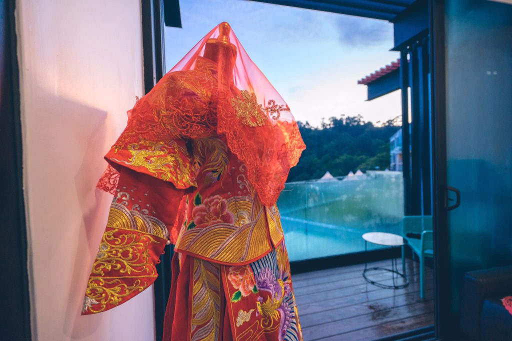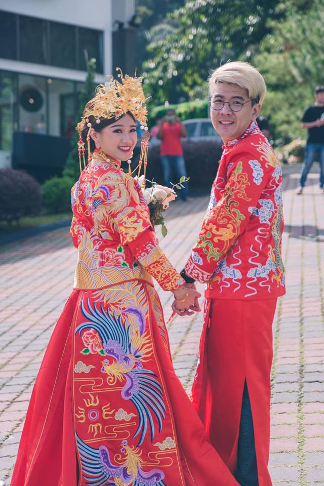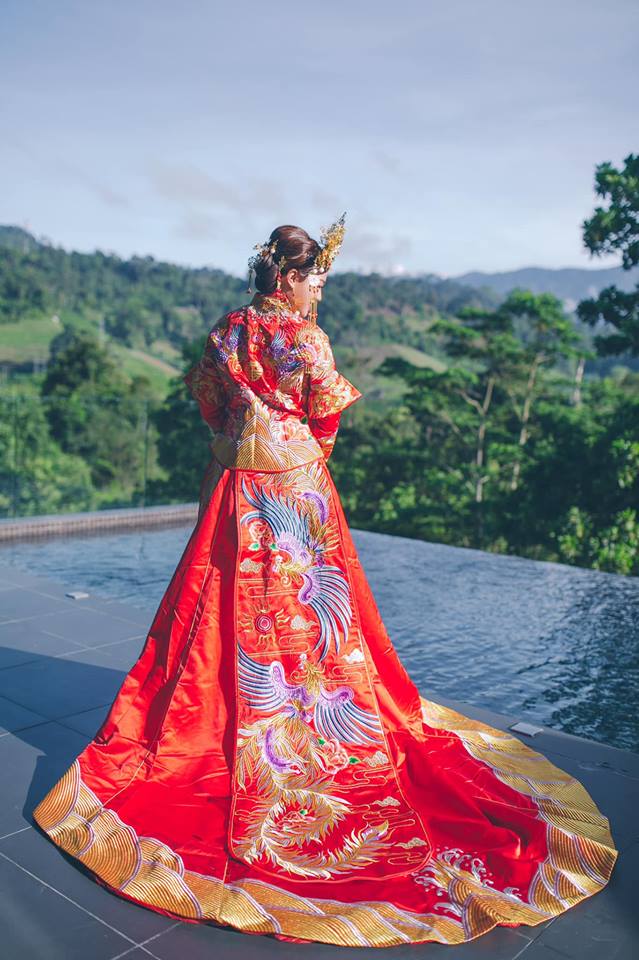 我买了一件婚纱、一套裙跨+一套白西装,再加上两双鞋子,一堆头饰大概只花了RM1000。对,不要怀疑!如果你在KL租,应该只可以租一件婚纱吧。