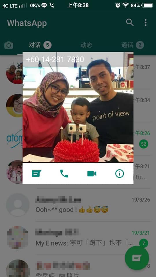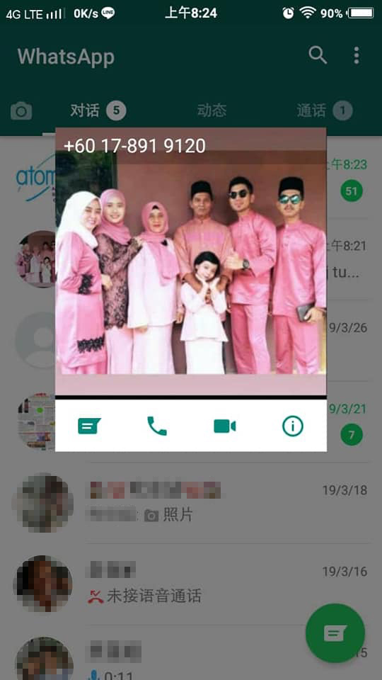 ▼截图4: 骗子1的Whatsapp照片。(有可能是盗用其他人的照片)