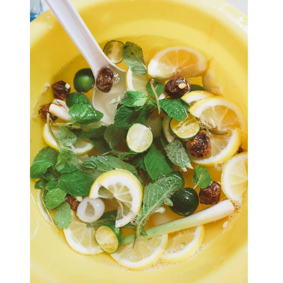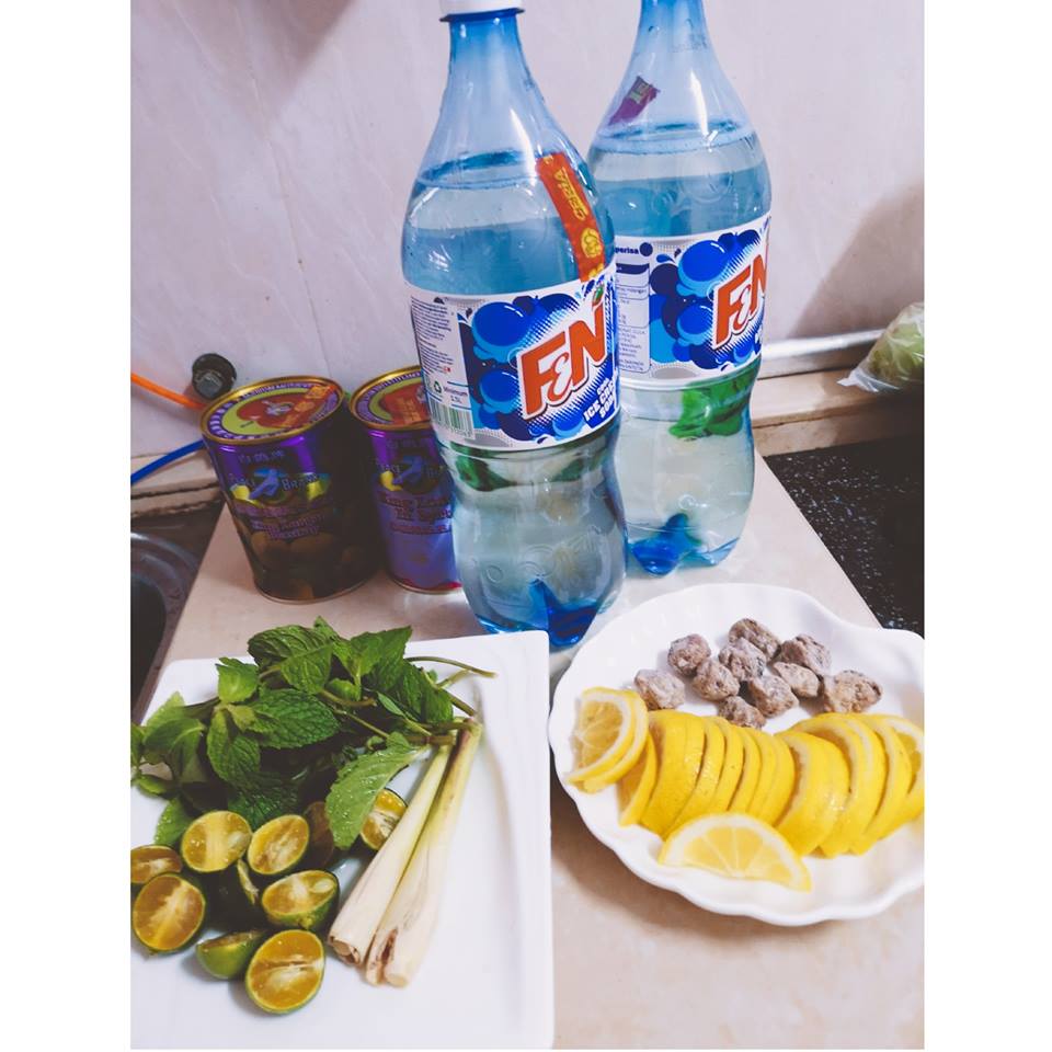 ▼ 香茅、薄荷叶、柠檬、橘子,酸梅、龙眼、Ice cream Soda,搅拌均匀后放入冰箱里让它们浸泡 让味道出来,就超级好喝了。