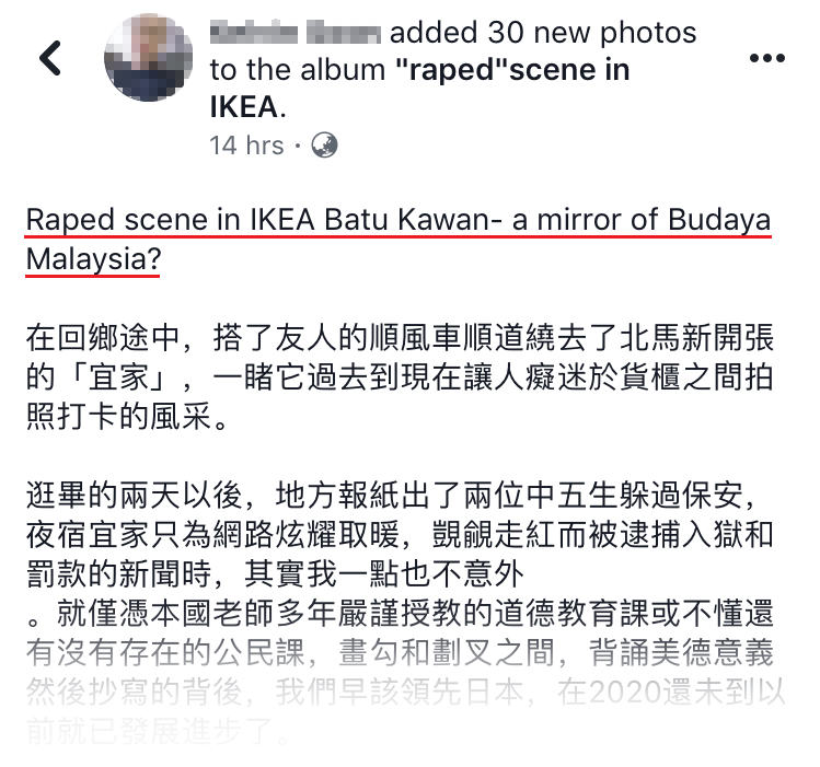 现在轮到了网民在网上细数大马人到IKEA的坏习惯并加以形容被破坏过的IKEA犹如被强奸般似的!