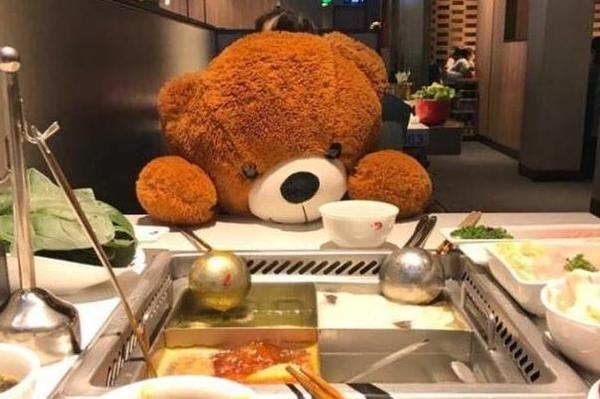 听说一个人去吃海底捞火锅,服务员会细心到在你的对面放个娃娃让你不孤单!(不过话说回来,这什么招哦,本来还没那么招摇,放个熊陪你吃岂不是全场人都知道你是单生狗!!)