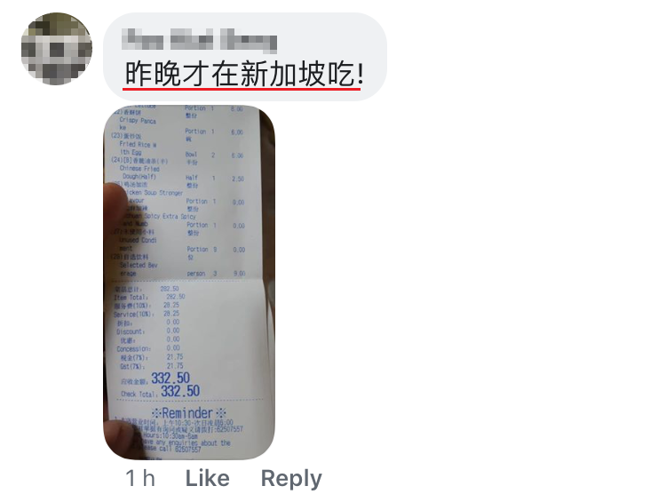 ▼此时有网友才贴出新加坡海底捞的单据。