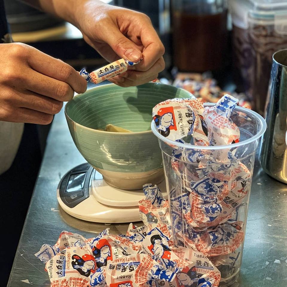 续大白兔奶糖的雪糕的热潮后后,又一家老板采用大白兔奶糖来做成食品但这次是做出大白兔奶糖珍珠奶茶。