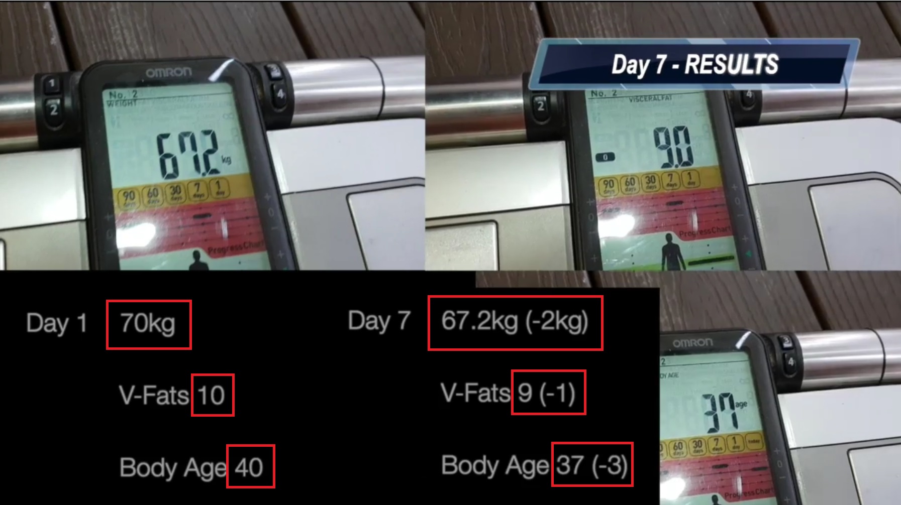 ▼ 这名男子坚持了 7 天以后,就看出明显的效果!