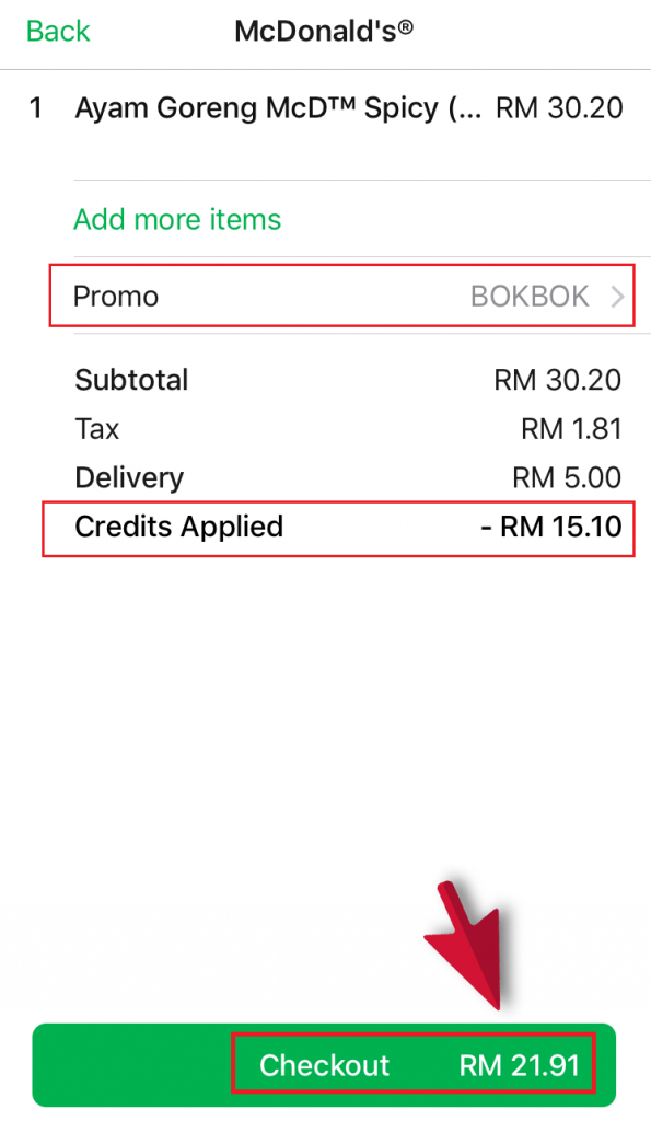 ▼使用优惠码后,5片Ayam Goreng MCD加了运费只需RM21.91,意思1片炸鸡只需RM4.38