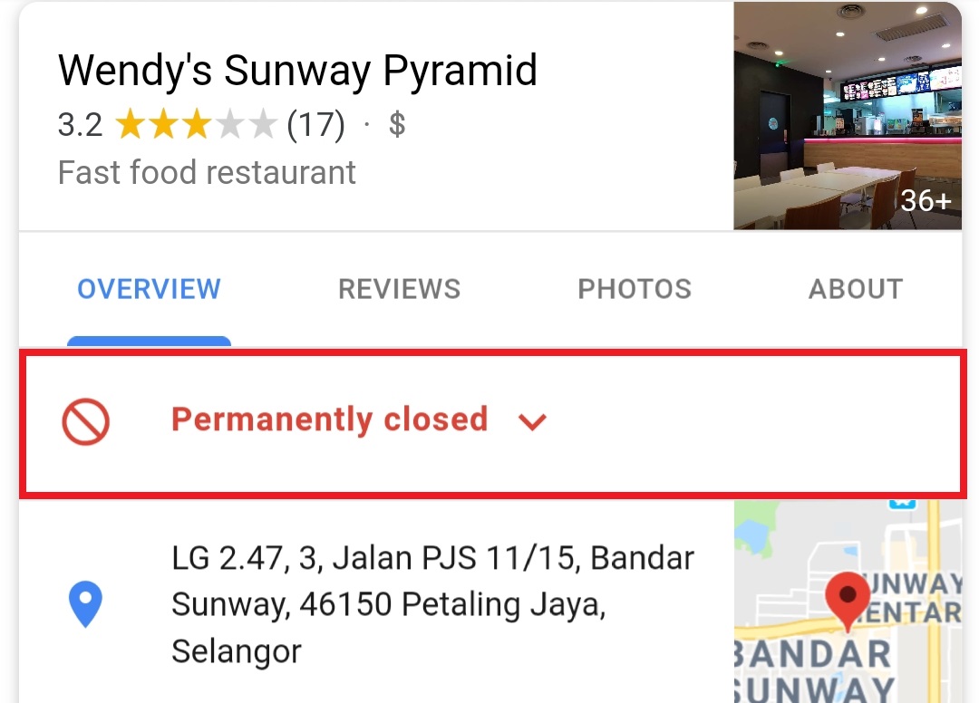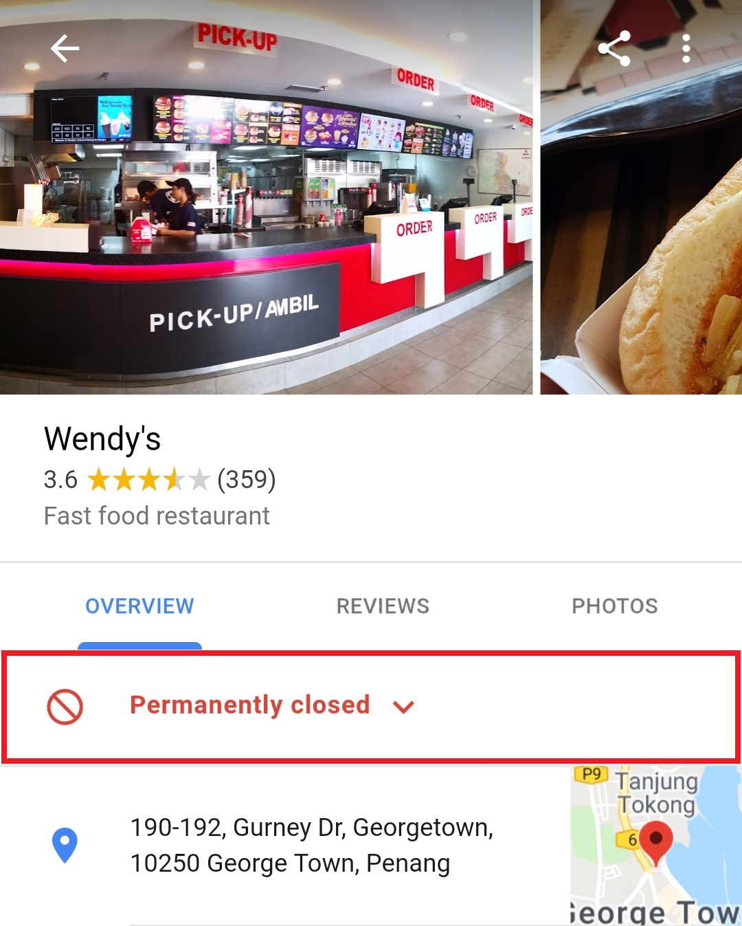 ▼ Google Search 显示 Gurney Drive Penang 的 Wendy’s 已经不再营业。