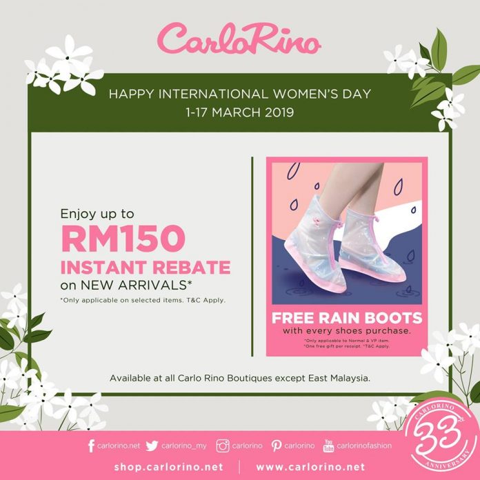 这对所有女士来说都是一种福利哦。购买New Arrival鞋履,即可购买一双免费RAIN BOOTS。更重要的是在CarloRino购物时还可以享有RM150的即时回扣!