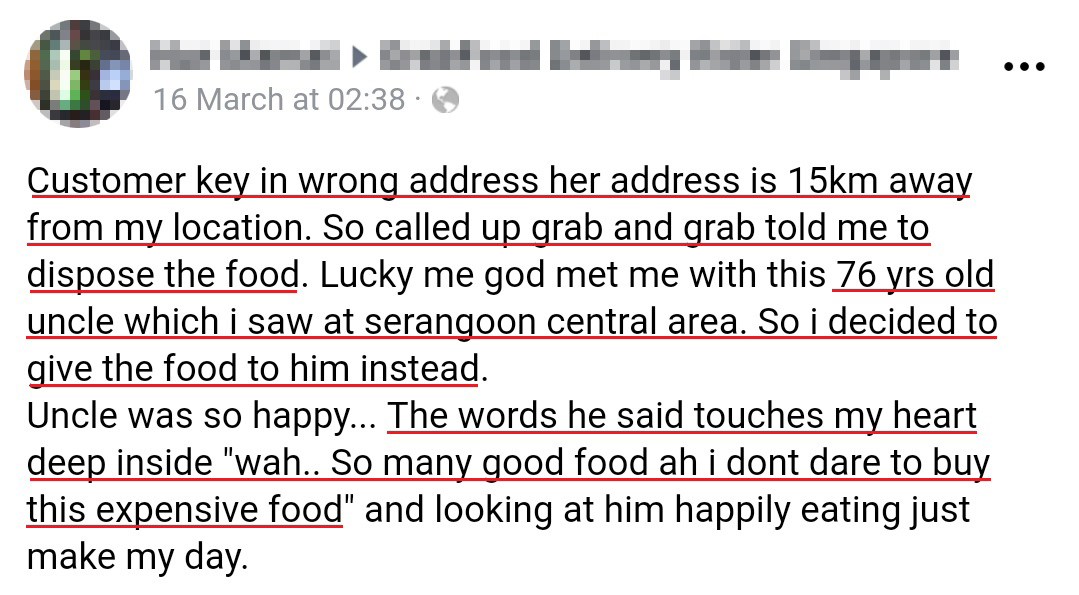 早前,新加坡有一名 Grab Food 的外送人员就在 Facebook 分享了一则帖文,说道他在工作的时候,遇到了一件非常暖心的事情。