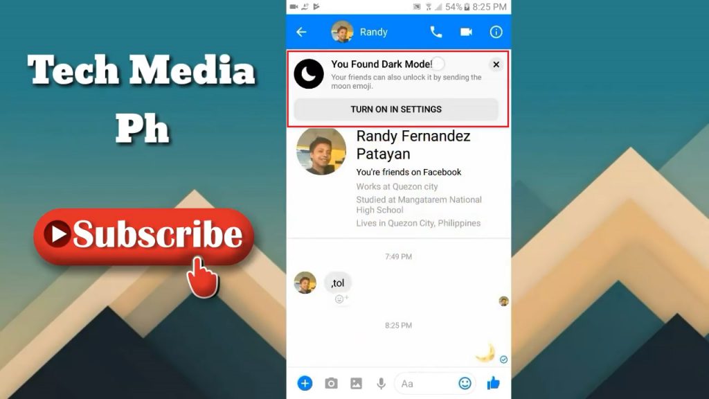 ▼不过必须注意,你必须Update你的Facebook Messenger才能启动“Dark Mode”功能。