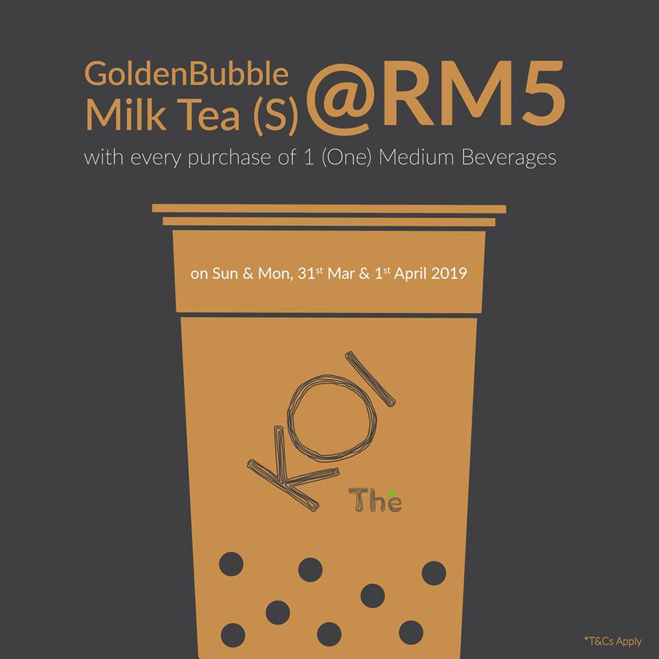 促销活动:KOI Thé Pavilion KL新店开张促销!黄金珍珠奶茶一杯只限RM5!