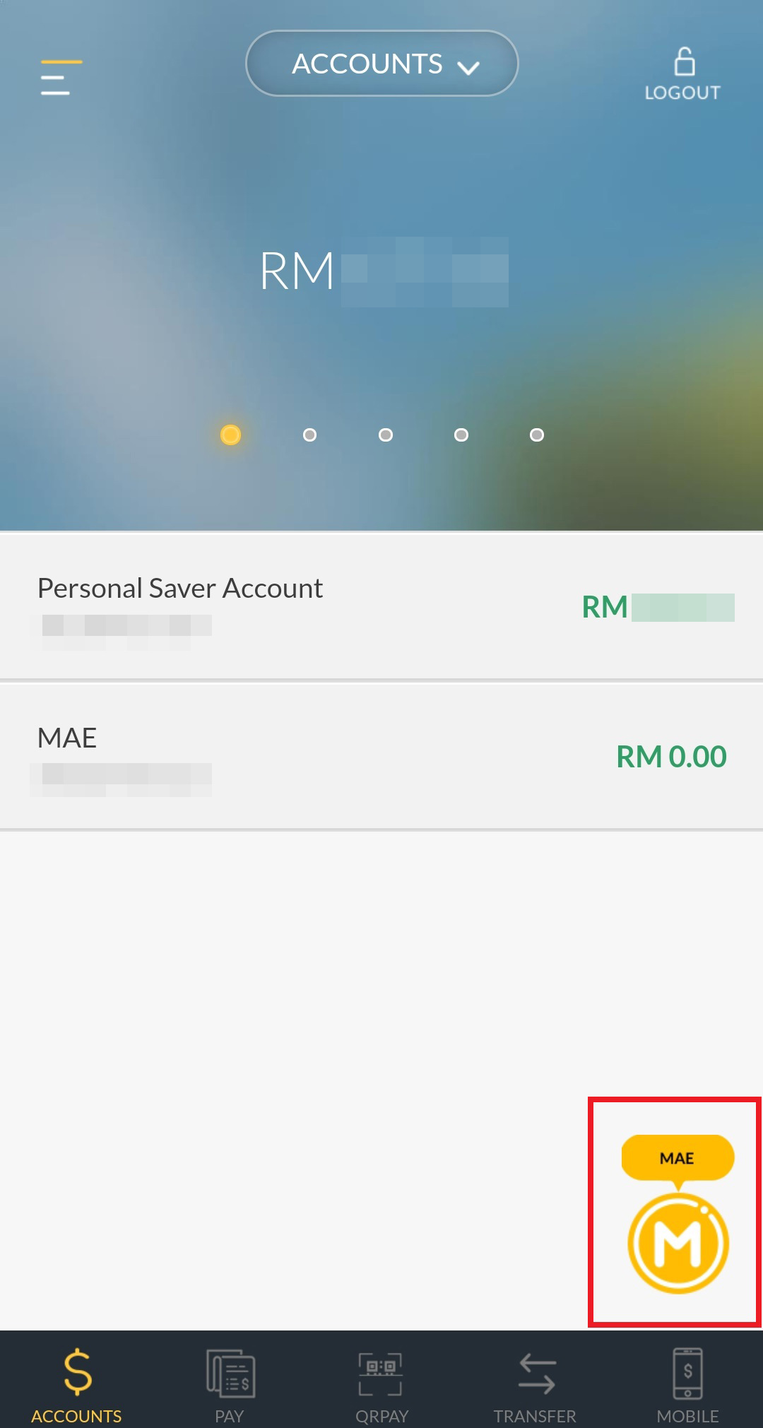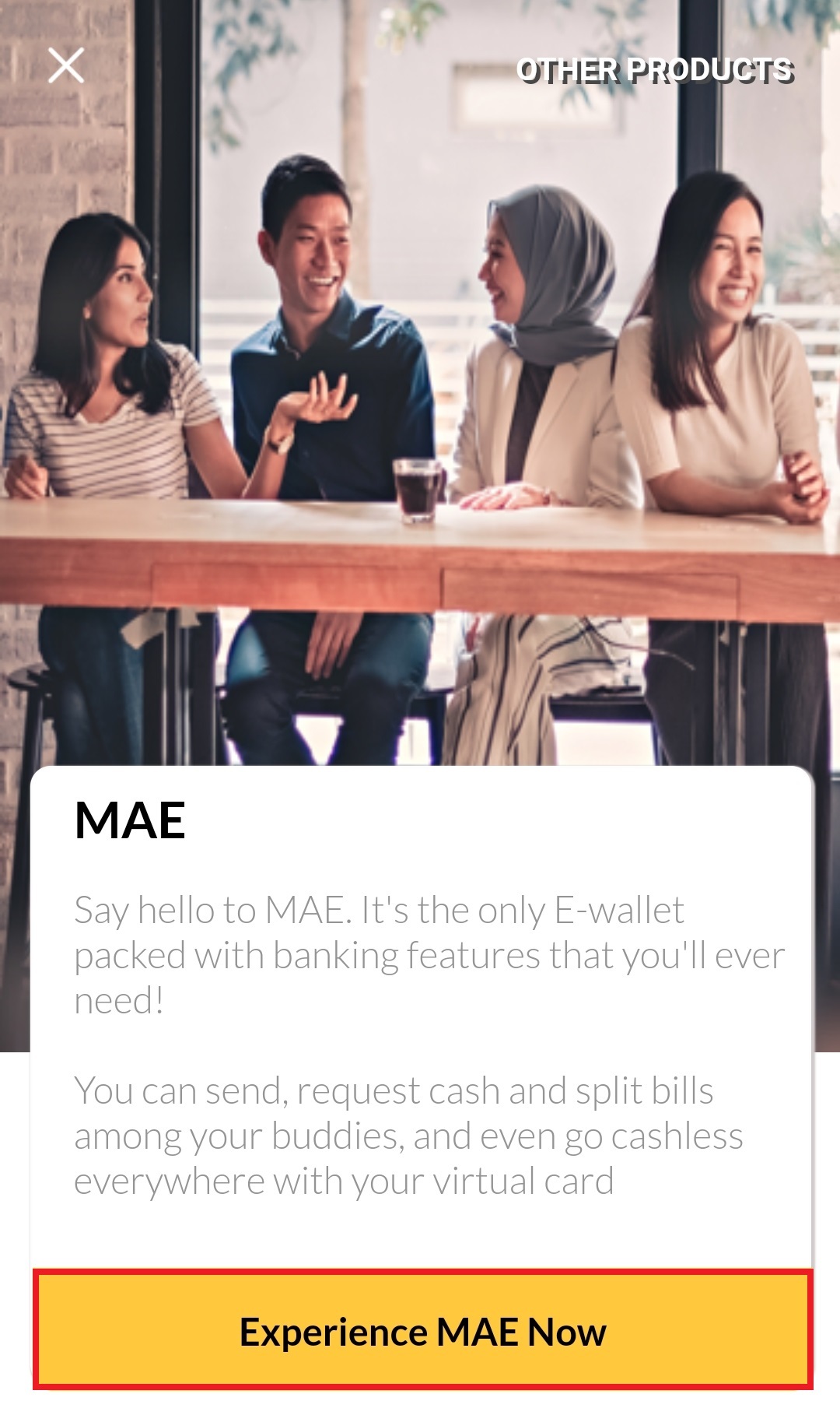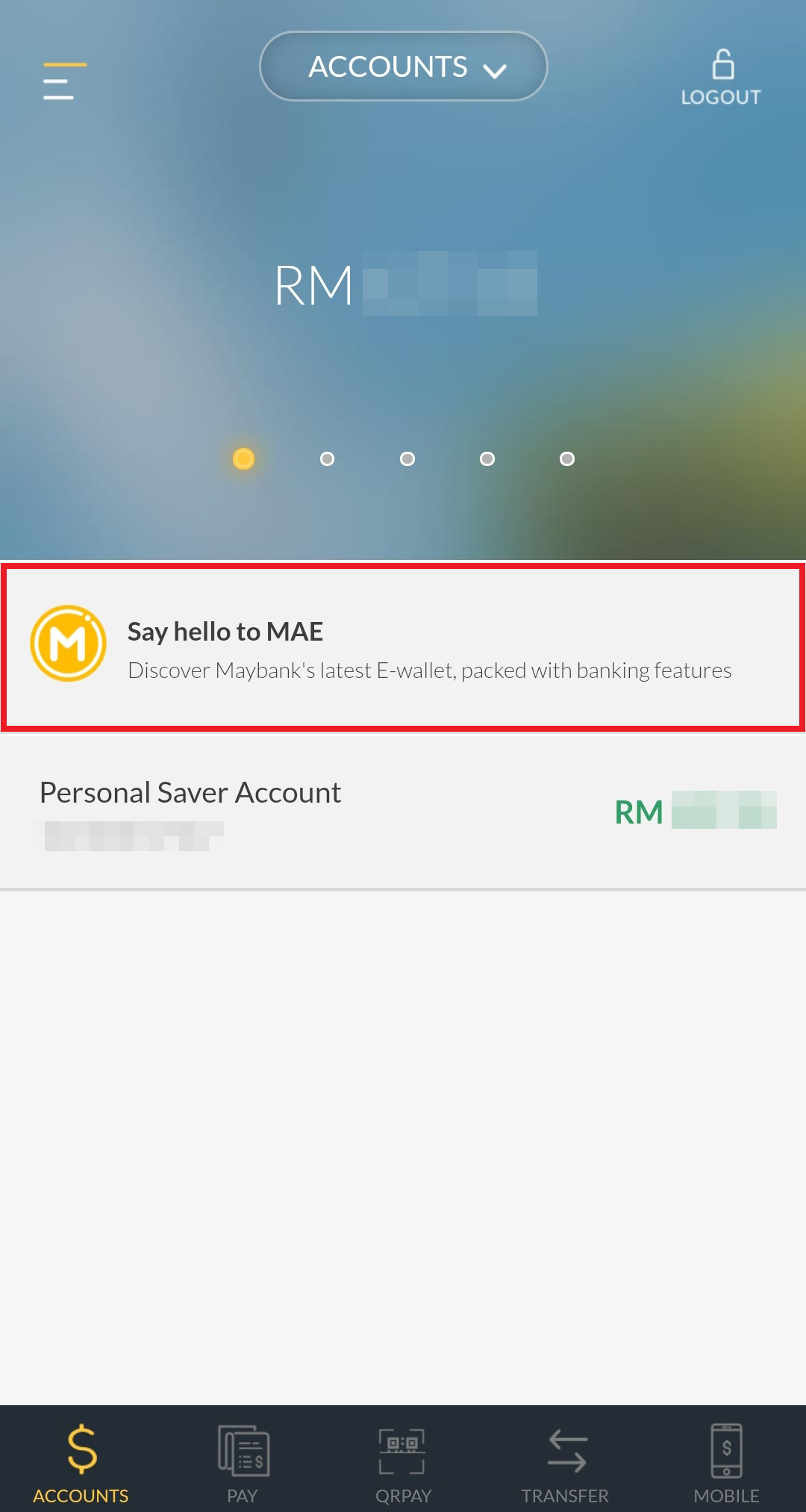▼ ① 在 Maybank APP 登入你的账号后,并点击 “ Say Hello To MAE ” 。