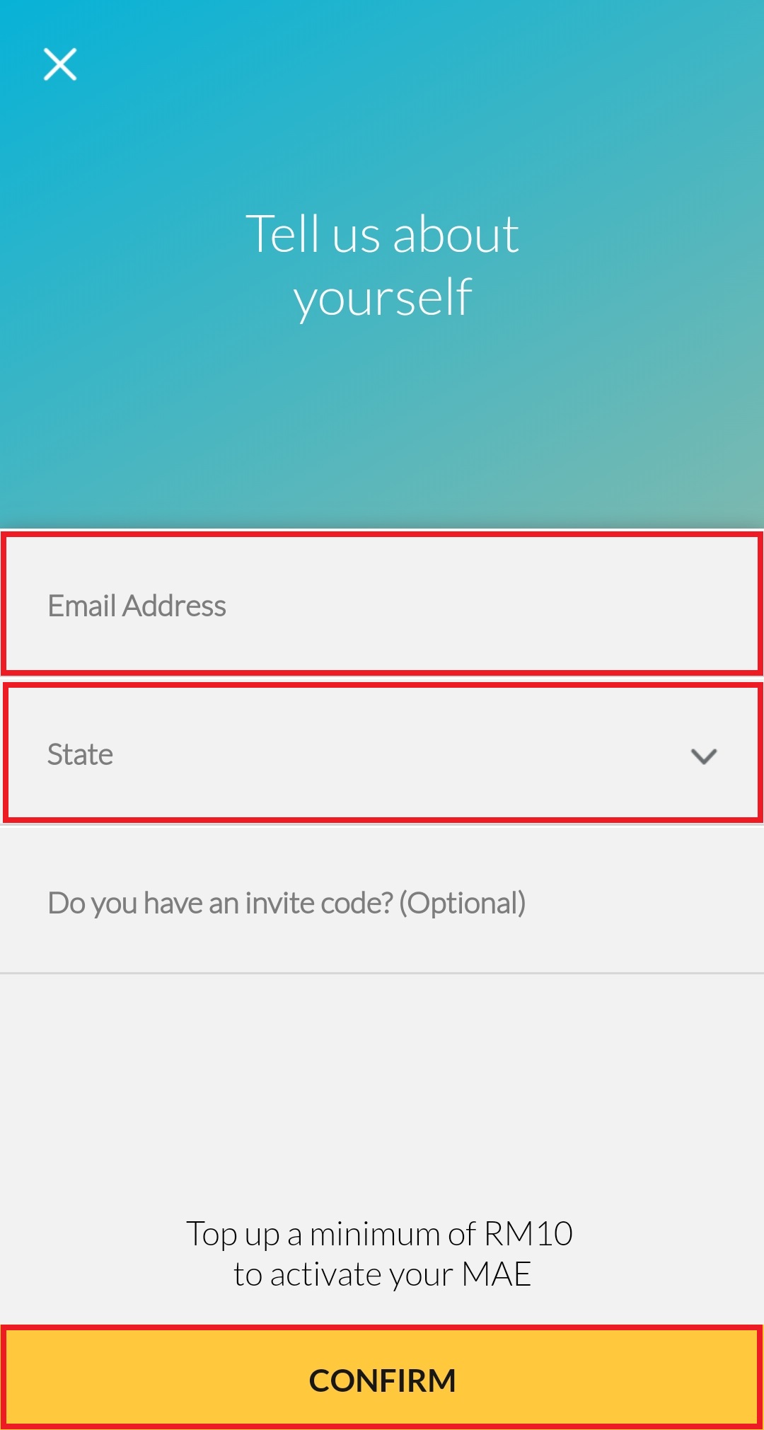▼ ③ 填写你的 Email Address(邮件)和 State(州属),Invite Code 可选择不填,填写任何一人的 Invite Code,他将获得一次玩游戏的机会。(若你愿意奖励小编,请填写 clt0601。鞠躬感谢!哈哈!)。填写完以后就点击 “ CONFIRM ” 。
