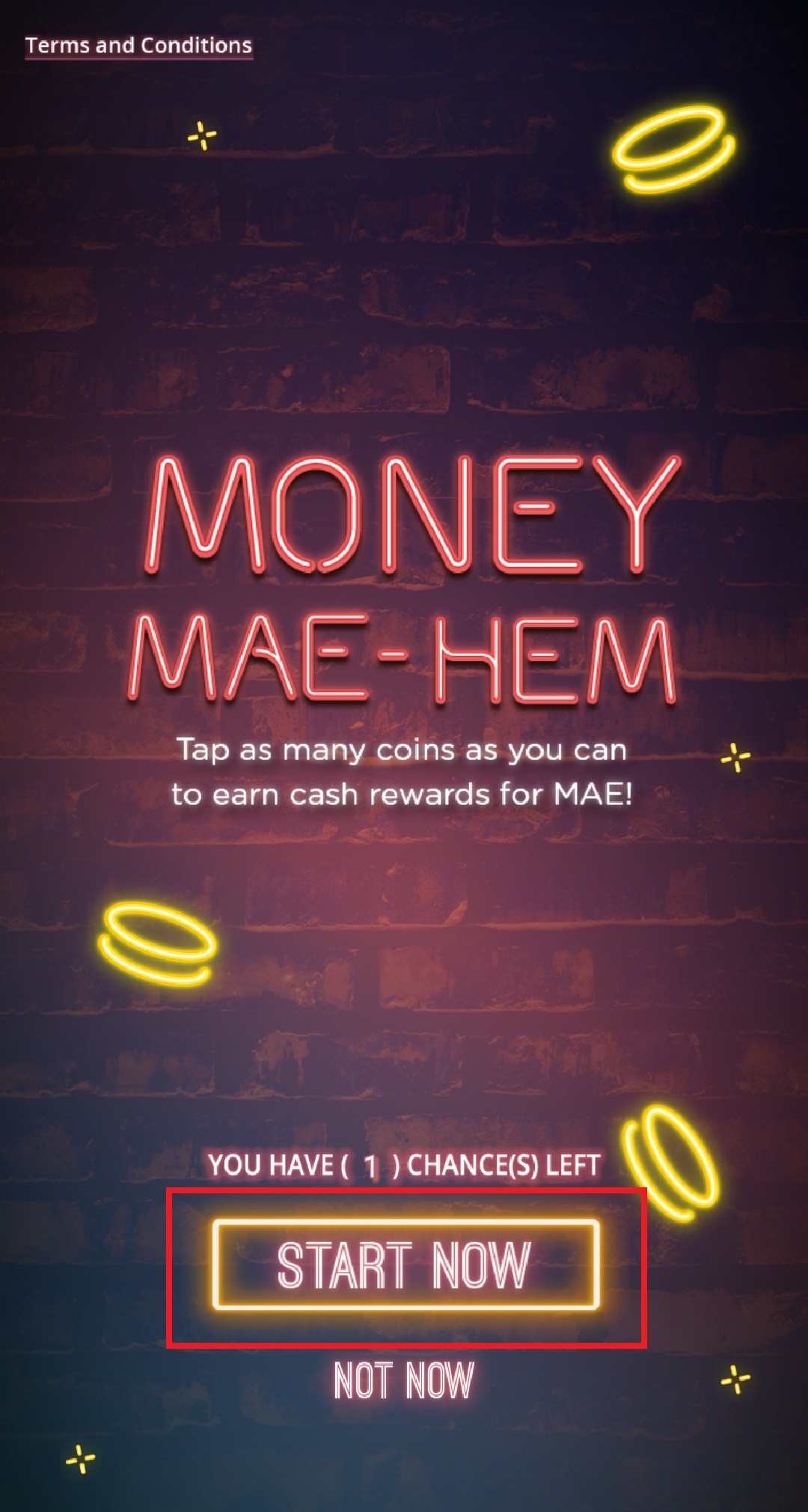 ▼ ⑦ 画面将显示你的 MAE 余额。若想要玩游戏赢取奖金,就点击右下角的 “ MONEY MAE-HEM ” 。