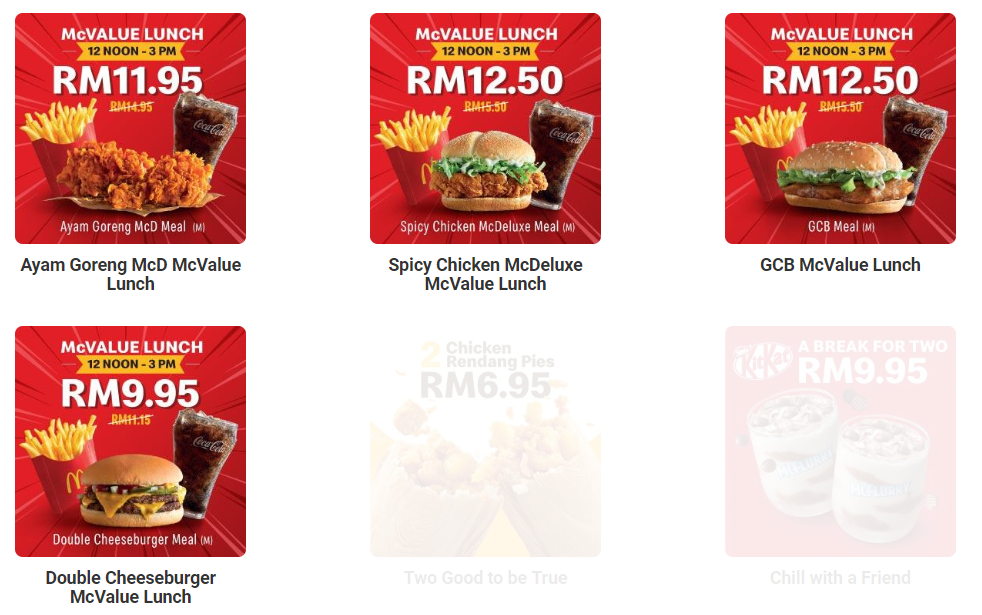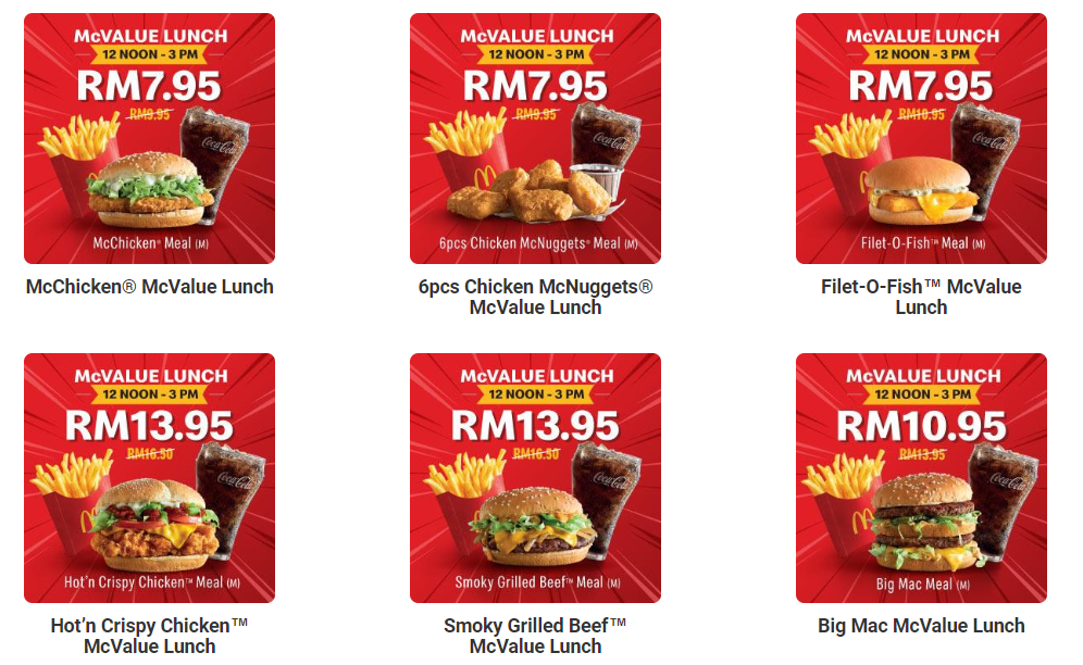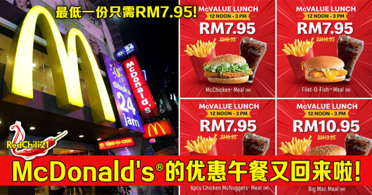 优惠活动:McValue Lunch最低只需要RM7.95!