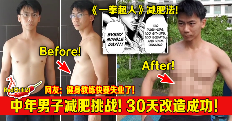 前几个星期一名新加坡的中年男子,挑战 One Punch Man 的减肥法而减肥成功,他还因此在网上突然爆红,你还记得吗?