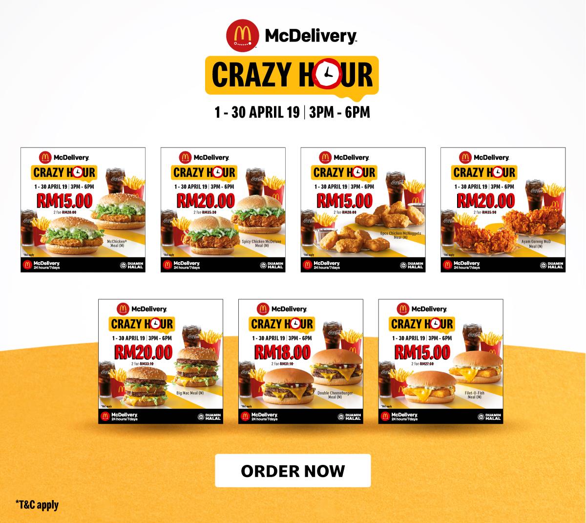 促销活动:Mcdonald’s Mcdelivery Crazy Hours(麦当劳外送疯狂时刻)