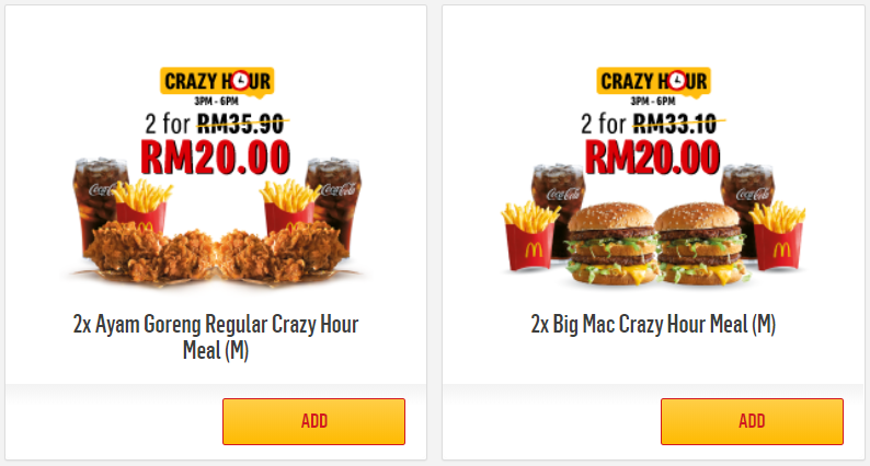 ▼ 2x Big Mac Crazy Hour Meal (M) 现在是 RM20.00(原价 RM33.10)!