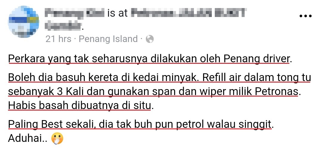 日前,大马的一个面子书专页就分享了一个帖文,说道槟城一名超抠门的男子,竟然在零消费的情况下,光明正大在加油站洗车!