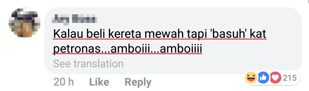 ▼ 「有钱买豪华轿车,却在 Petronas 洗车。」