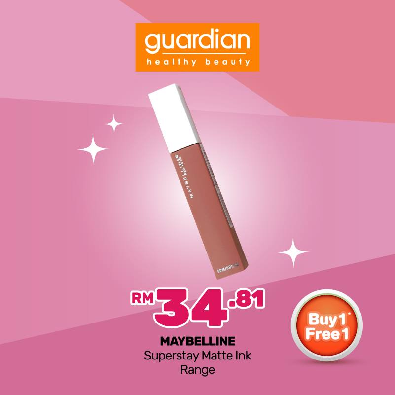 这个周末,Guardian 超多著名品牌的化妆品都买一送一!还有前阵子因口红一哥 —— 李佳琦在视频里介绍而爆红的 MAYBELLINE Superstay 口红也在买一送一优惠中哦!